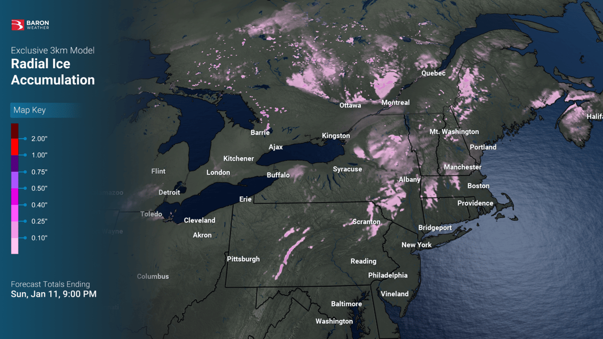 Ice accumulation depends heavily on what it’s accumulating on. Horizontal icing indices are useful for understanding surface-level hazards, such as road and walkway conditions that affect travel and safety, while radial icing indices help identify where elevated, three-dimensional structures like trees and power lines may be most vulnerable. Viewing ice from both surface-level and infrastructure-focused perspectives helps explain why impacts can differ dramatically across short distances.