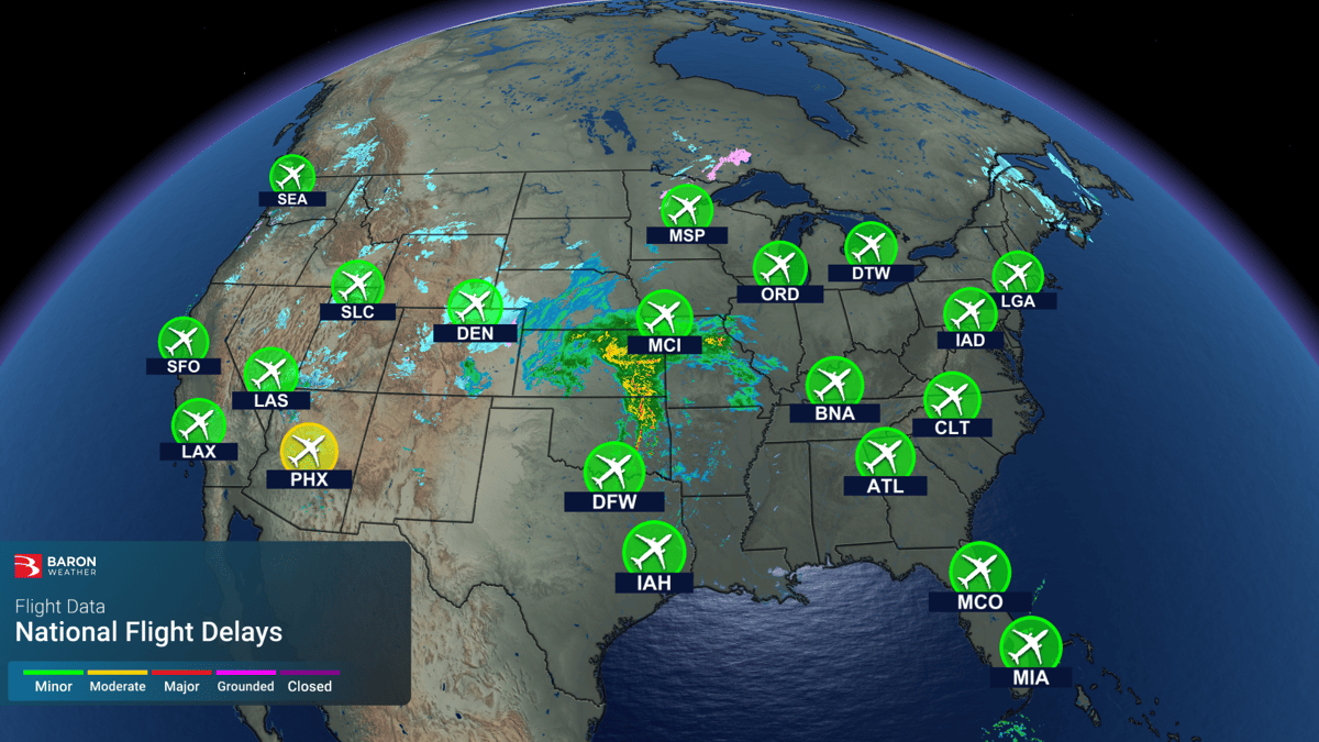 Winter storms often trigger cascading impacts that extend beyond the storm itself. Power outages, transportation disruptions, and operational slowdowns can persist long after precipitation ends. Assessing where these risks are highest — and how they overlap — adds valuable situational awareness. Large winter systems can also disrupt operations across wide regions, with airport delays and closures extending impacts far beyond a single forecast area.